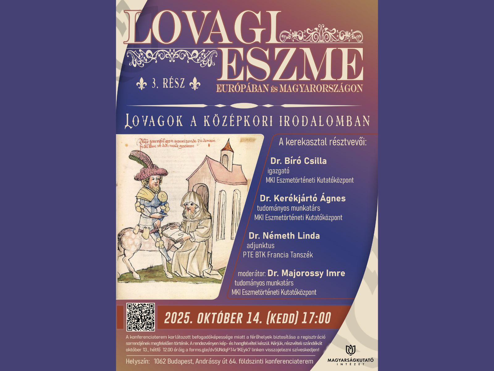 A Magyarságkutató Intézet 2025. október 14-én, kedden 17 órától kerekasztal-beszélgetést szervez „Lovagi eszme Európában és Magyarországon - Lovagok a középkori irodalomban” címmel.